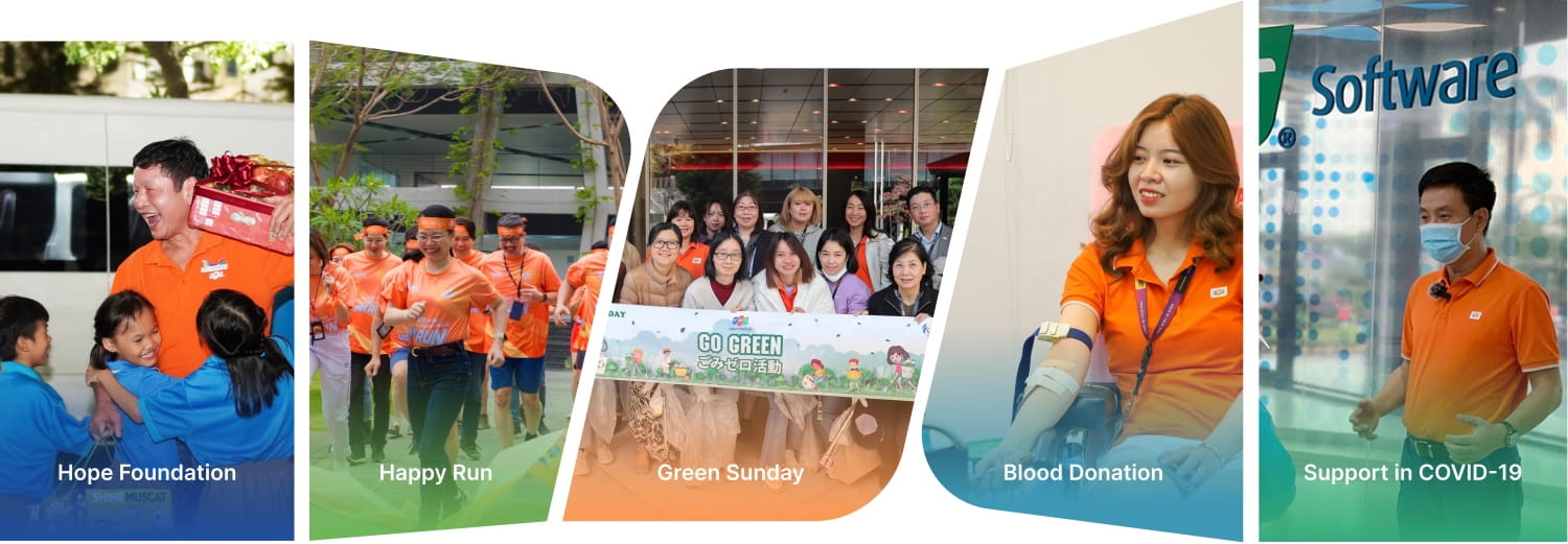 FPTソフトウェアは、国連の「持続可能な開発目標(SDGs)」17項目への取り組みを通じて、テクノロジーの活用や未来を担う人材の育成、新たな価値の創出に努め、すべての人々のための持続可能な未来を実現する変革の原動力となります。