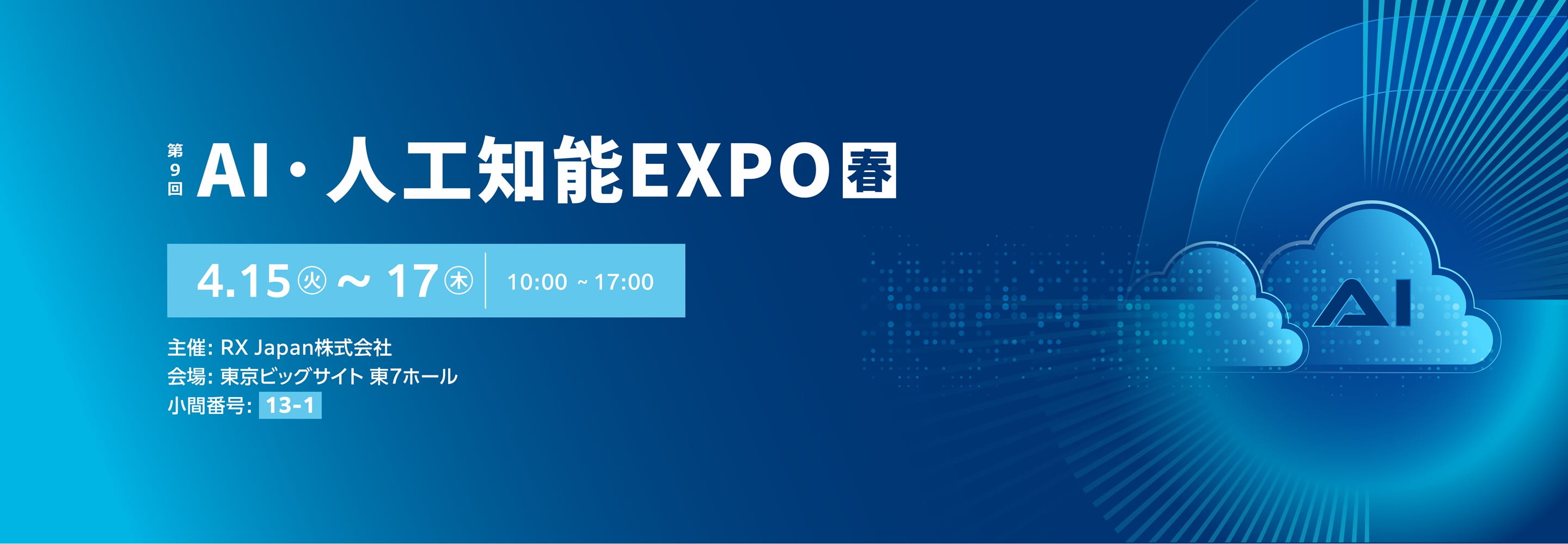「AI・人工知能EXPO」は製造、物流、金融、流通などさまざまな業種向けの最新AI技術(生成AI、チャットボット、ディープラーニング、自然言語処理、画像認識など)が集結する、日本最大級のAI技術の専門展示会です。
