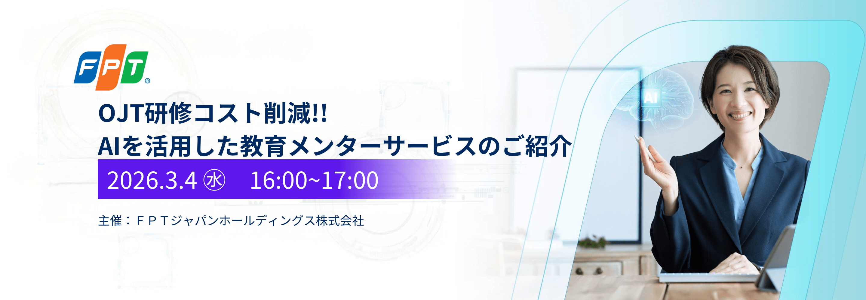 さらに今回は、実際にFPT AI Mentorを導入いただいている企業様にもご登壇いただき、導入の背景、現場での活用方法、導入後に得られた具体的な成果や変化についてリアルな声をお届けします。 座学にとどまらない、実践的で再現性の高い人材育成の最新アプローチを、事例とともにご紹介します。