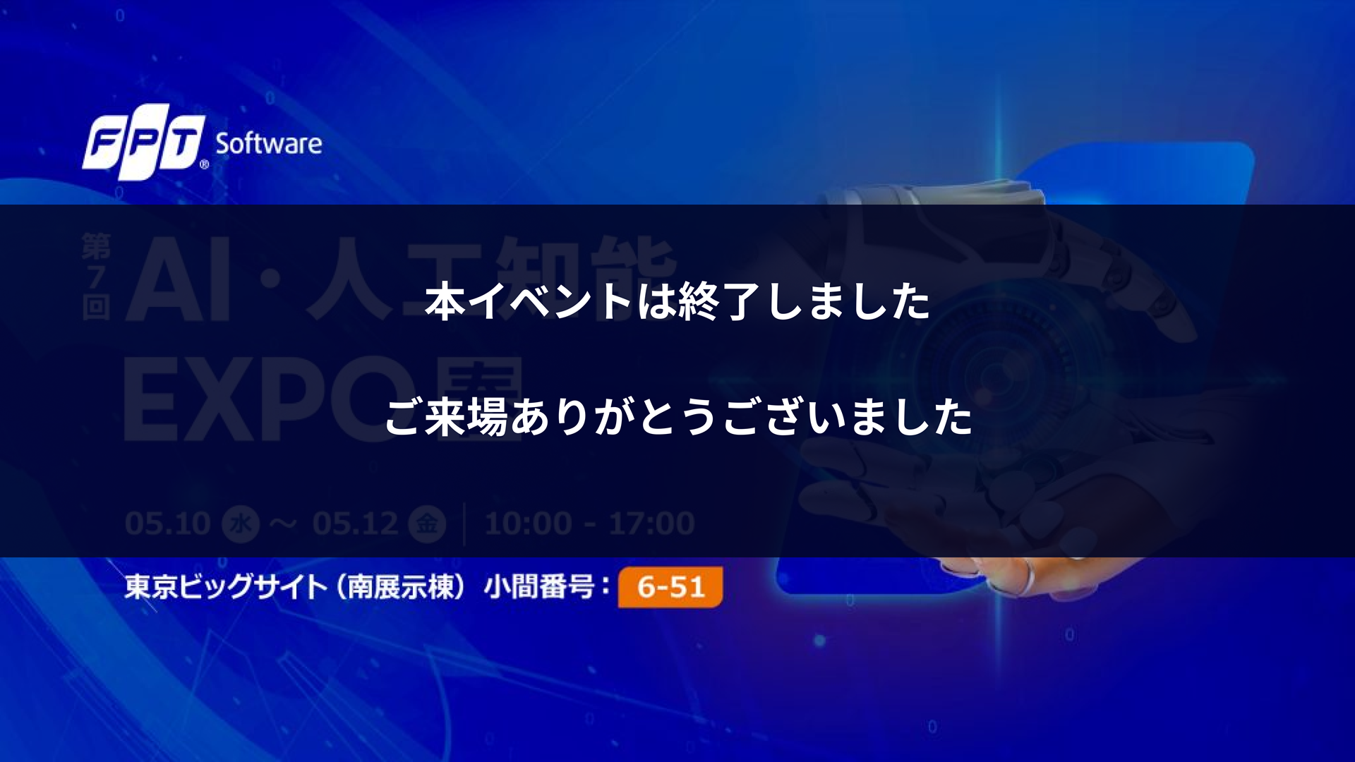 FPTジャパンホールディングスは、「業界別ユースケース」「データ」「プラットフォーム」「人材」の4つをテーマに、それぞれ最先端のAIサービスやソリューションを展示します。また、ブース内にセミナーコーナーを設け、業界別のユースケースや弊社のAIケイパビリティについて紹介します。皆さまのご来場を心よりお待ちしております。