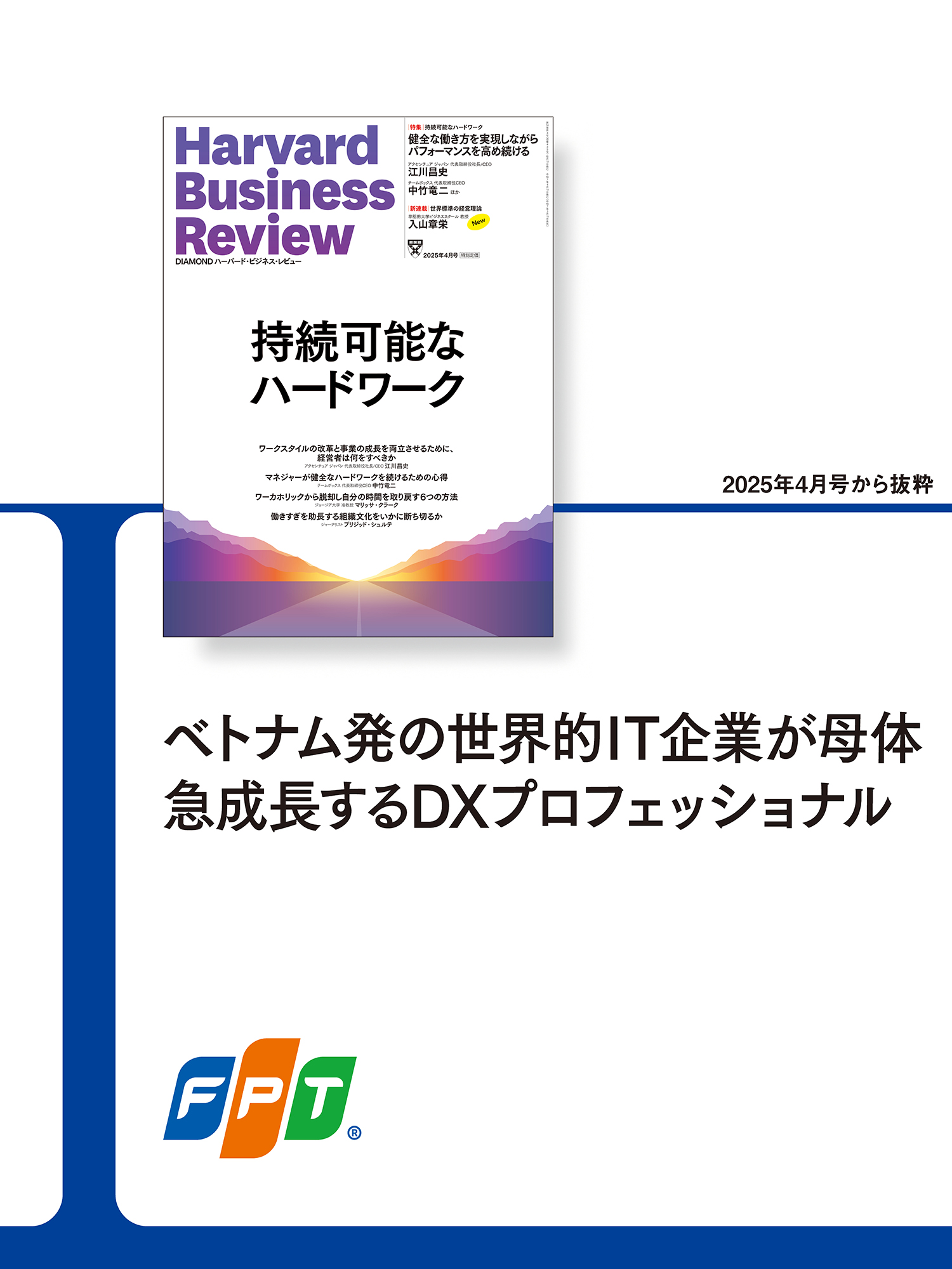 FPTコンサルティングジャパン株式会社(所在地:東京都港区、代表取締役社長:グエン・フウ・ロン(Nguyen Huu Long)、以下FPT)のこれまでの足跡、今後の戦略に関する広告記事がDIAMONDハーバード・ビジネス・レビューの広告特別企画「コンサルティングファーム図鑑」に掲載されたことをお知らせいたします。