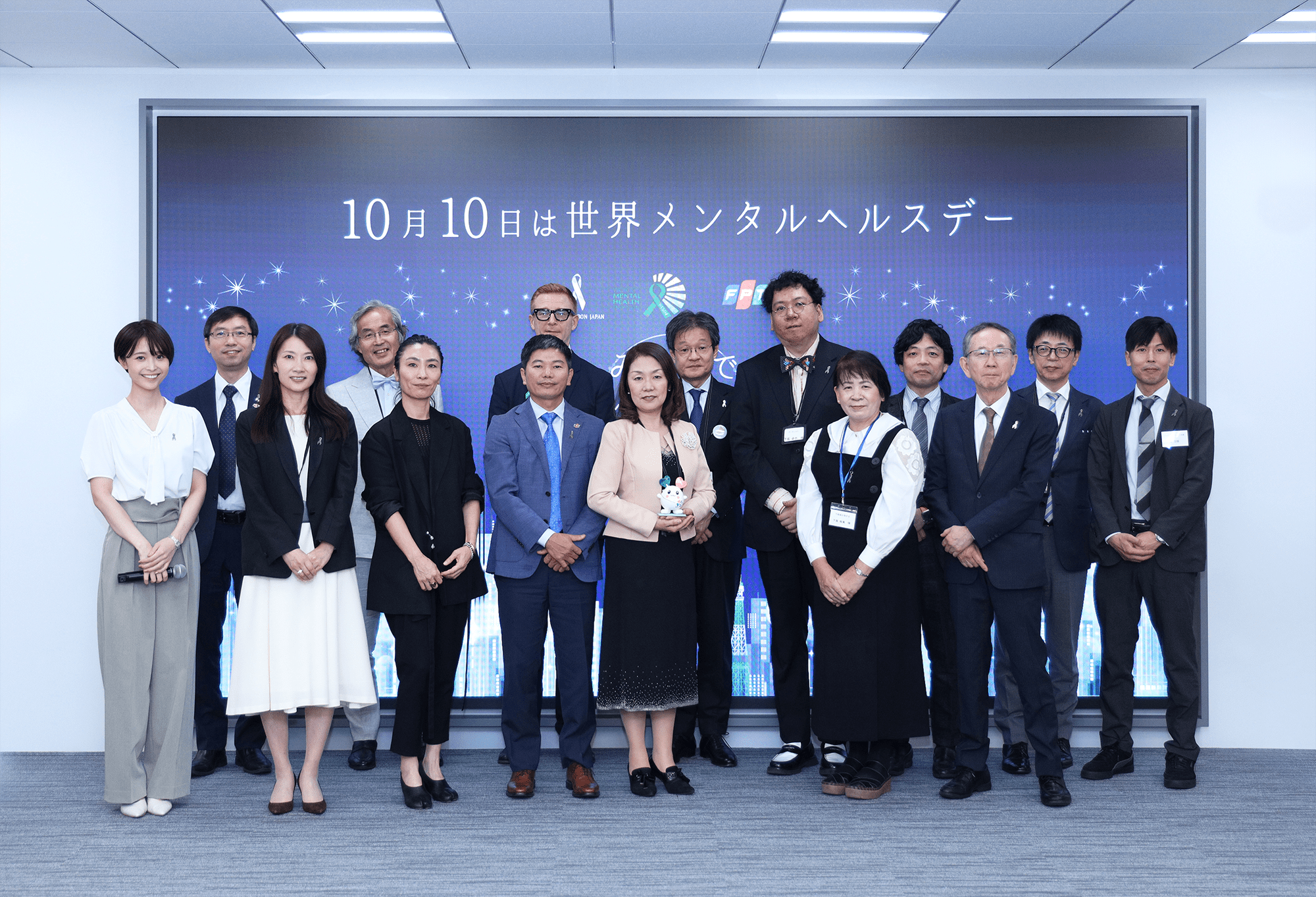 FPTは世界メンタルヘルスデー2025を昨年よりも上位のトップパートナーとして協賛し、東京タワーのシルバー&グリーンライトアップ点灯式では、FPT東京本社オフィスを会場とし共催いたしました。当日は、厚生労働省や在日ベトナム大使館をはじめとするご来賓の皆さまとともにカウントダウンを行い、全国各地のライトアップ会場や大阪・関西万博との中継も行われ、メンタルヘルスへの理解を深める機会となりました。
