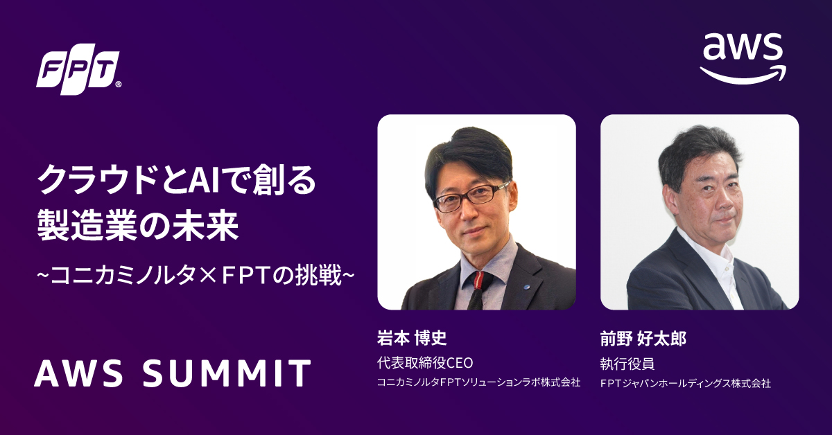 FPTコーポレーション傘下のFPTジャパンホールディングス株式会社(本社:東京都港区、代表取締役社長:ド・ヴァン・カック(Do Van Khac)、以下 FPT)は、2026年6月25日(木)、26日(金)開催のアマゾン ウェブ サービス ジャパン合同会社(以下 AWS)が主催する日本最大級のクラウド技術イベント 「AWS Summit Japan 2026」 に、ゴールドスポンサーとして協賛することをお知らせいたします。6月26日(金)のセッションでは、製造業における大規模クラウド移行とAI活用を成功に導く“突破口”を公開します。社内のクラウド課題や技術移管の壁を、コニカミノルタ、FPT、AWSのシナジーで乗り越えた実践事例をご紹介いたします。